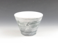 淡い緑釉で彩色した大堀相馬焼では珍しい磁器製三角形ぐい呑