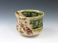 轆轤成形で胴締めし伝統の織部様式で装飾したぐい呑