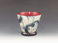 日本古来の朱漆(根来)の見込みと黒漆(曙)の高台で胴回りを染付装飾した新進性ある漆陶ぐい呑!