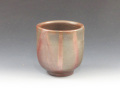 焼締め焼成で金色に発色した条線模様の緋襷が景色を創るぐい呑