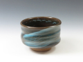 黒釉掛けの器を青刷毛目で装飾した印象的な景色のぐい呑!