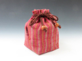 ぐい呑袋(会津木綿 赤三色縞) 酒器番号 : 9FUK0485